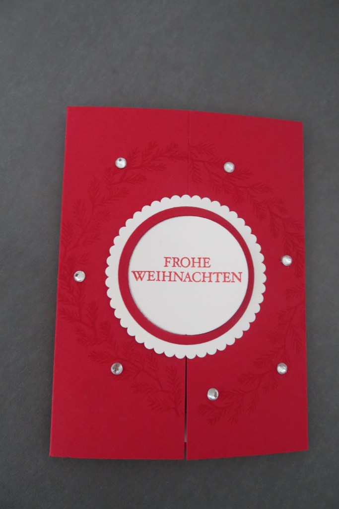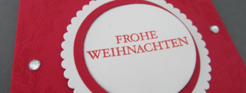 Heute zeige ich euch eine Weihnachtskarte mit dem neuen Stempelset mit Schwung. Das Besondere an der Karte ist der Öffnungs- und Schließmechanismus. Der äußere Ring ist auf der einen und der innere Kreis auf der anderen Seite befestigt. Probiert es doch auch mal mit anderen Formen aus!